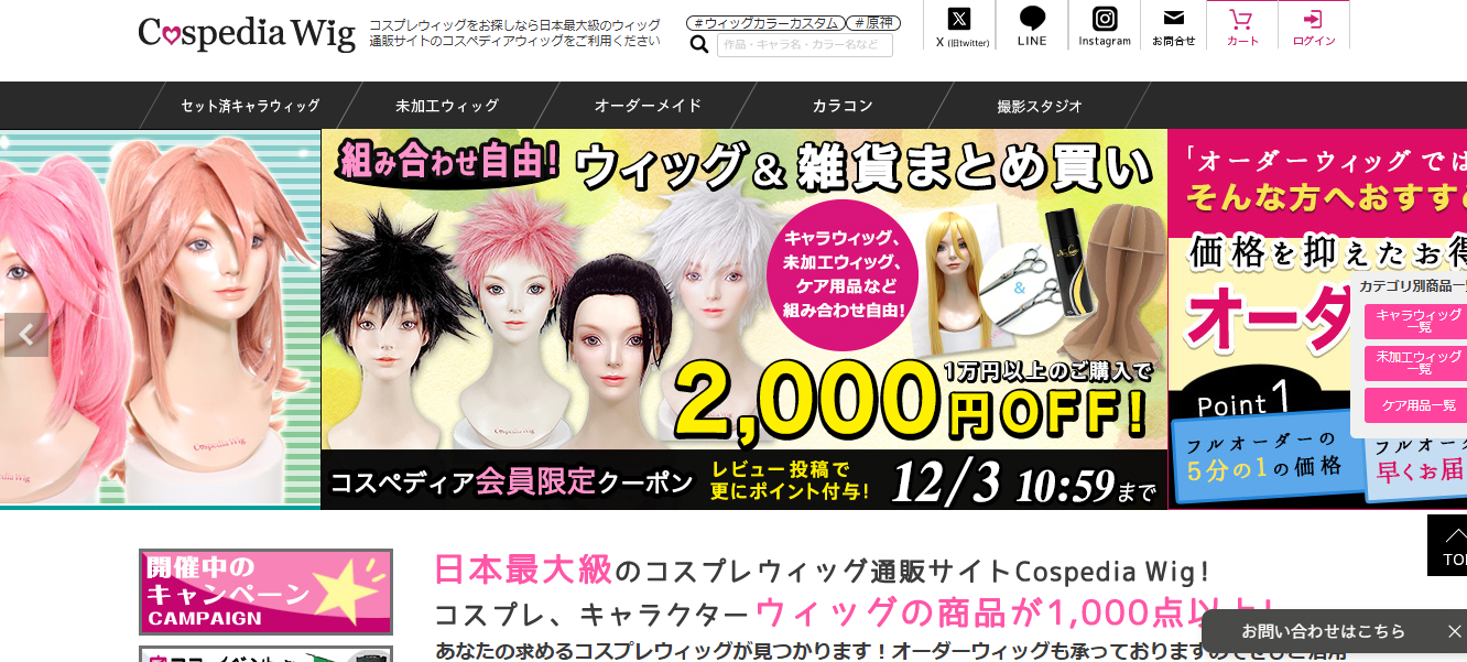 「Cospedia Wig(コスペディアウィッグ)」は、ウィッグの通販とオーダーメイドを手がける通販専門ブランドで、運営会社は株式会社じゃねっとです。公式サイトでは、美容師によるセット済みのキャラクターウィッグから、自分でアレンジ可能な未加工ウィッグ、さらにはオーダーメイドウィッグまで、幅広く取り扱っていることが紹介されています。