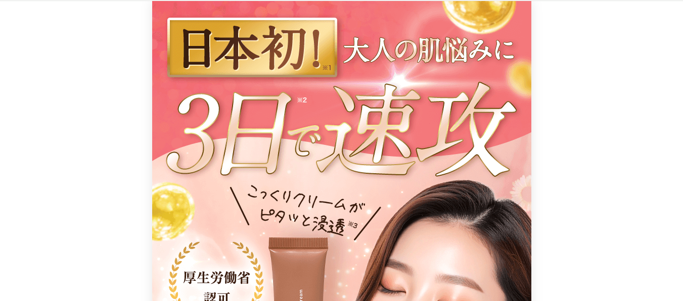 公式サイトの情報に基づき、イクダムは「シワ改善&美白効果」(公式サイトの情報に基づく)を誇る薬用クリームです。さらに、公式サイトには、このクリームが持つ8つの効果効能(公式サイトの情報に基づく)が掲げられています。これにより、気になるシワやシミに集中的に働きかけるだけでなく、内側から輝く素肌(公式サイトの情報に基づく)へと導くサポートをします。できてしまったシワやシミはもちろん、これからできる可能性のあるダメージにもアプローチ(公式サイトの情報に基づく)するため、攻めと守りの両面から、お肌の悩みに立ち向かいます。